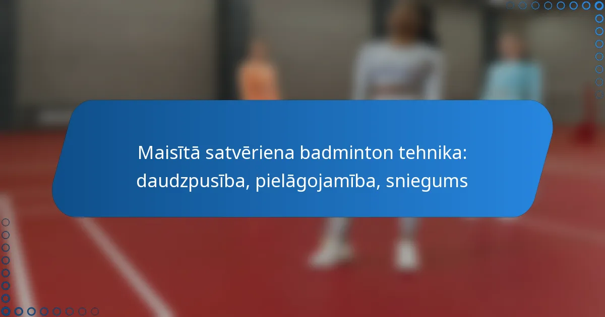 Maisītā satvēriena badminton tehnika ir dinamiska pieeja, kas apvieno priekšējo un aizmugurējo satvērienu, nodrošinot spēlētājiem uzlabotu daudzpusību un pielāgojamību laukumā. Apgūstot šo satvērienu, sportisti var uzlabot savu sitienu dažādību un aizsardzības spējas, kas noved pie labākas kopējās snieguma spēlēs. Šī tehnika ir būtiska ātrām pielāgošanām un efektīvai laukuma segšanai, padarot to par vērtīgu aktīvu konkurētspējīgiem spēlētājiem.